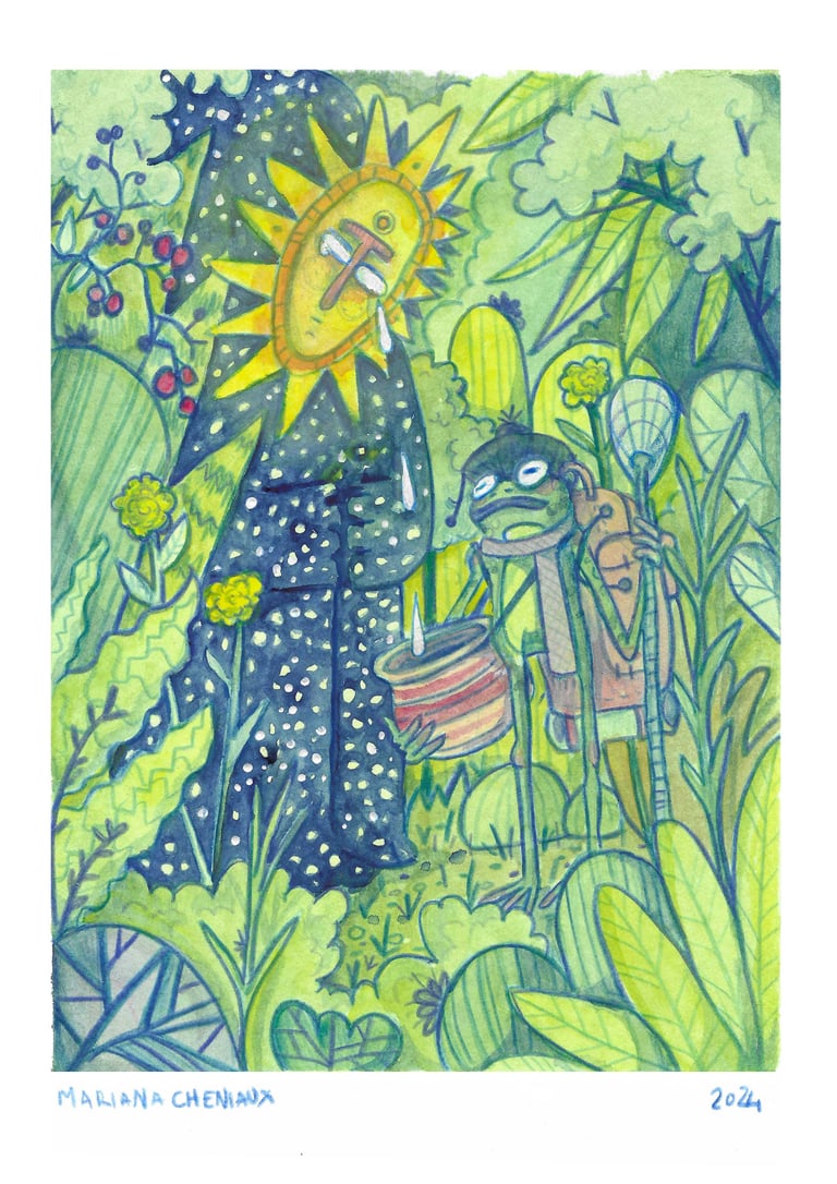 The Night Sun God and the Guardian Frog illustration Print
